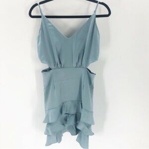 WAYF Mackenzie Cutout Tiered Ruffle Satin Mini Dress