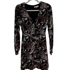 WAYF Malone Plunge Mini Dress Black Floral Paisley Print XS Long Sleeve