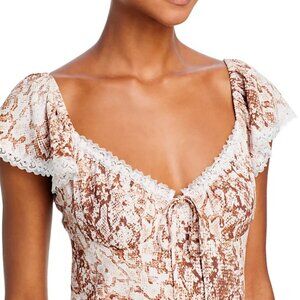 WAYF “Melissa” Lace-Trim Brown Python Maxi Dress | Size XS | NWT