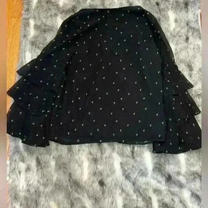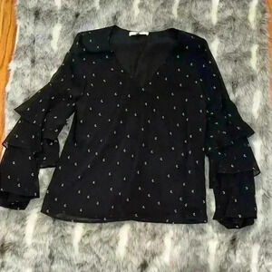 WAYF Micah Ruffle Sleeve Black White Crescent Moon Print Blouse sz small