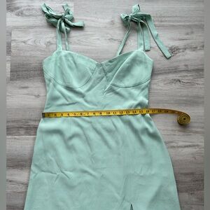 This WAYF mint green dress features stylish tie straps and a flattering silhouette. Perfect for any occasion.