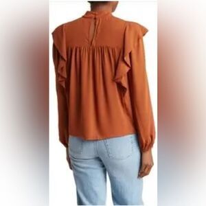 WAYF Mock Neck Ruffle Long Sleeve Blouse, M