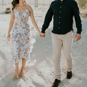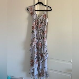 WAYF Morgana Floral Tiered Ruffle Asymmetrical Sleeve Maxi Dress size XS