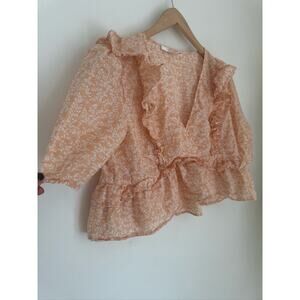 * Tags: WAYF ruffle top,peach cotton peplum,floral summer blouse