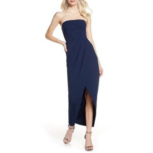 WAYF Navy Blue Angelique Strapless Tulip Hem Dress Gown 91618WCH-Z97 EUC Size XS