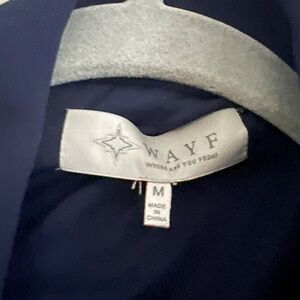 Like new, only worn once. Lovely navy color with feather trim on wrists.