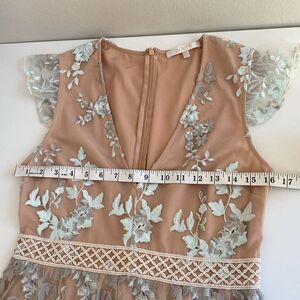 WAYF Oakfield Sky Blue, Gray, & Tan Embroidered Lace Maxi Dress Size Medium