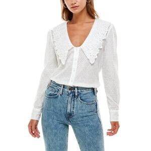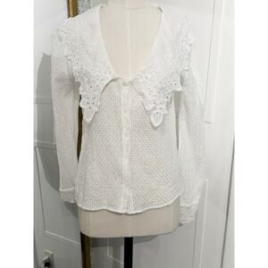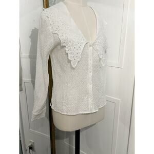WAYF Octavia Embroidery Cotton Blouse In Ivory Size Medium NWOT