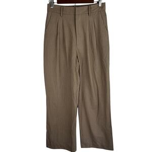 WAYF PLATED WIDE LEG CAREER PANTS IN BEIGE STRIPE NWT WOMEN'S SIZE SMALL