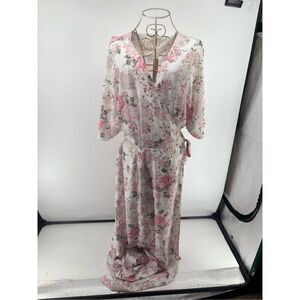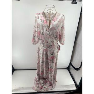 WAYF POLY CHIFFON PINK Floral LONG Wrap DRESS Size Large Feminine