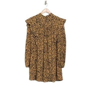 WAYF Pierce Leopard Print Long Sleeve brown/black Mock Neck Minidress Sz S