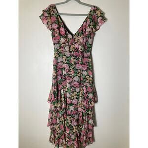 WAYF Pink Floral Flutter Sleeve Special Occasion Maxi Dress Sz S