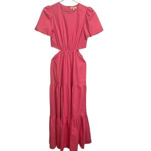 WAYF Plaza Cutout Puff Sleeve Maxi Dress Hot Pink Cotton Size Small