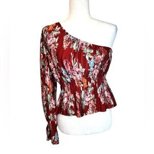 WAYF Pleated One Shoulder Floral Top Scarlet Roses