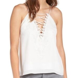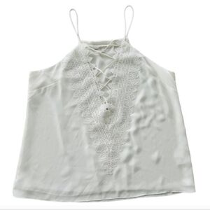WAYF Posie Tank Top Medium White Lace Up V-Neck Camisole Boho Festival Romantic
