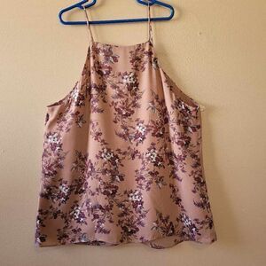 WAYF Posie Lace-up Floral Mauve Lace Trim Camisole Medium