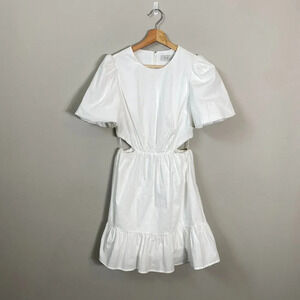 WAYF Puff Sleeve Cutout Ruffle Mini Dress Womens Small* White Fit & Flare Bridal