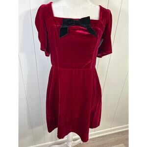 WAYF Red Velvet With Black Bow Thinking Of You Puff Sleeve Mini Dress in Size XL