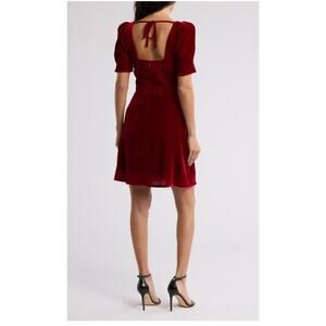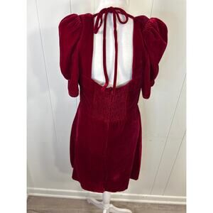 WAYF Red Velvet With Black Bow Thinking Of You Puff Sleeve Mini Dress in Size Extra Large NWOT