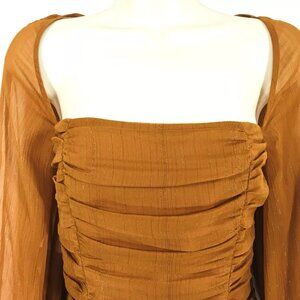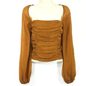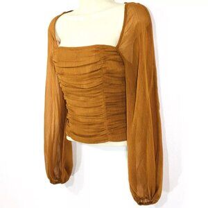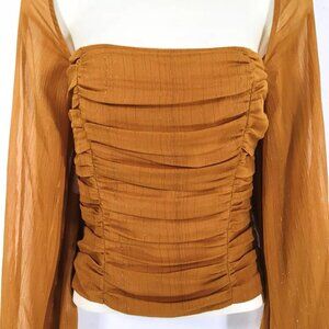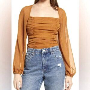 WAYF Ruched Front Top with Sheer Puff Sleeves in SaffronXS