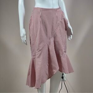 In great used condition. WAYF Ruffles Stripe Skirt. Size: Small. Color: Red/White. Professionally dry cleaned. There’s a pill or stretch in the lining see last 2 pics.