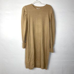 WAYF San Francisco Long Puff Sleeve Mini Knit Sweater Dress Camel