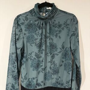 WAYF Sheer Floral Print Bodysuit Mock Neck Long Sleeve Feather Cuff Size XL