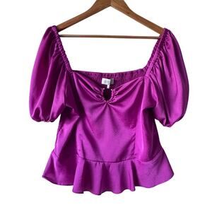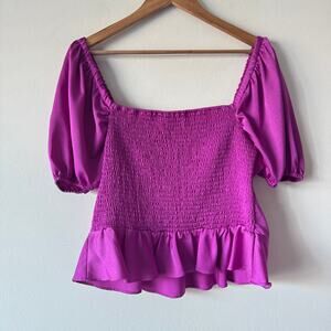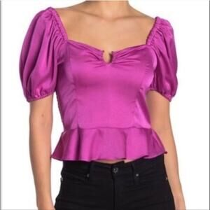 WAYF Shirt Womens Large Fushia Sweetheart Neckline Milkmaid Peplum Fairy Top