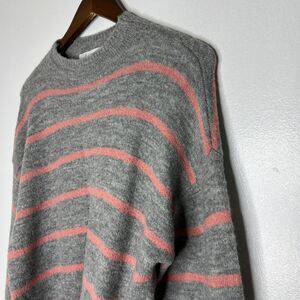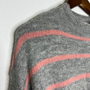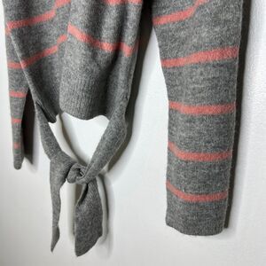 WAYF Size M Gray Pink Striped Knit Sweater Tie Front Casual Soft Pullover 4