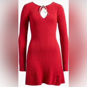 Indulge in flirty elegance with this WAYF Small Talk rib-knit dress in a vibrant red hue. Designed with a charming embellished bow that frames a subtle keyhole neckline, this mini dress features long sleeves and a sleek fit‑and‑flare silhouette. Crafted from a soft, stretchy rib blend (52% viscose, 48% nylon), it effortlessly slips on over the head. Perfect for cocktail parties, date nights, or any standout evening look.