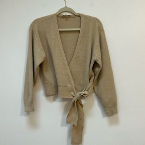 Excellent condition! Billowed sleeves and a gracefully wrapped silhouette sweeten this ribbed sweater.