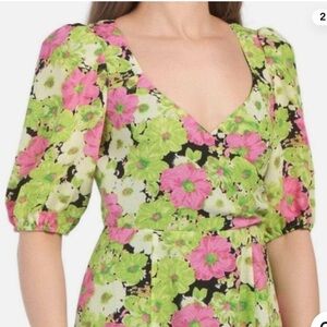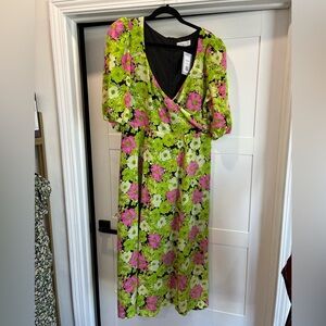 WAYF Surplice Neck Green Floral Midi Dress size XL