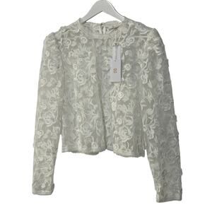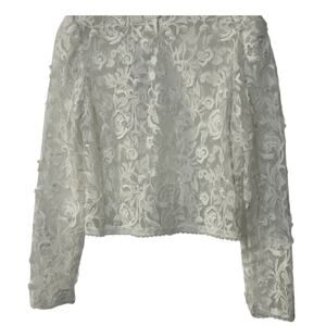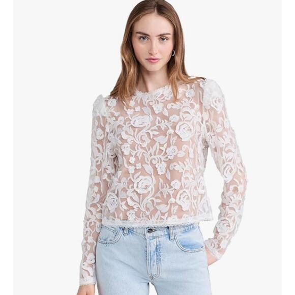 WAYF TOP WOMENS SIZE LARGE ALANA EMBROIDERED SHEER WHITE LACE BLOUSE ONLY