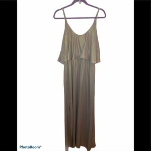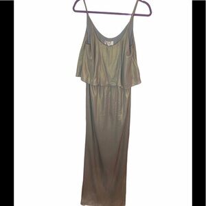WAYF The Carolina Popover Gown In Platinum Shimmer, new with tags, no visible flaws, approximately 62 1/2" length, Slips on over head, Scooped neck, Sleeveless, Side slit, Partially lined