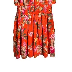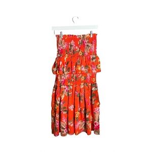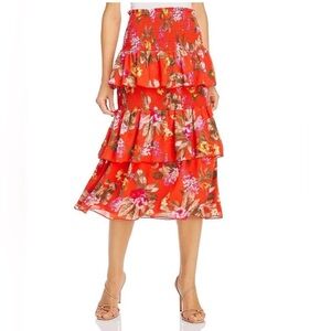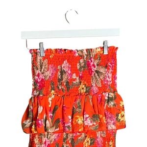 WAYF Tiered Passion Floral Smocked Midi Skirt Orange Size S NWT