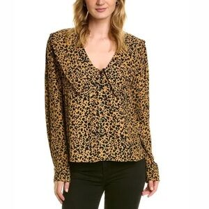 WAYF Top Esther Collar Cheetah Print Blouse Ruffled Pointed Collar