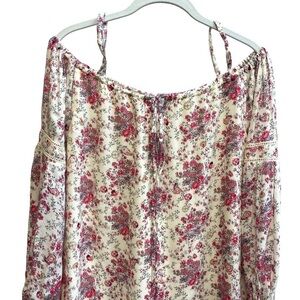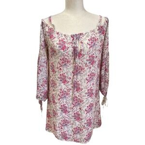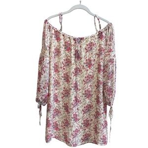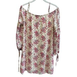 WAYF Tunic Top Dress Size XS Boho Floral Pink Red Off Shoulder