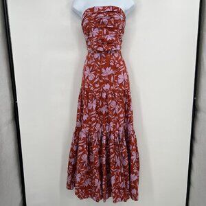 WAYF Two Piece Strapless Floral Maxi Dress Rust Red Pink Tiered Smocked Back S