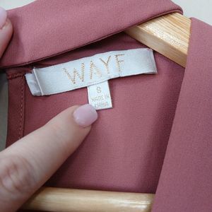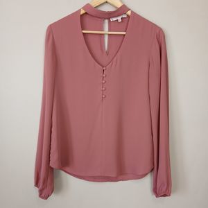 WAYF V-Neck Blouse Women Small Minimalist Feminine Keyhole Flowy Elegant Casual