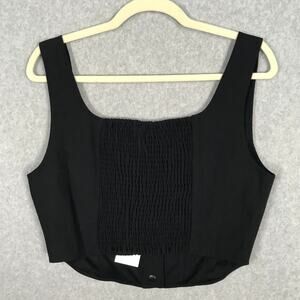 WAYF Where Are You From Shirt Womens Large Black Crop Top Tank Bustier Festival Snaps Smocked Stretch Biker Rock
