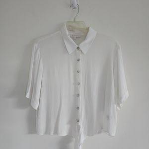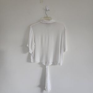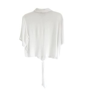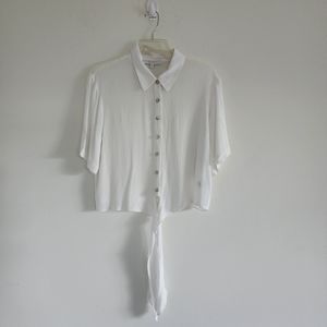 WAYF White Collared Button Front Bottom Tie Short Sleeve Shirt Size Medium