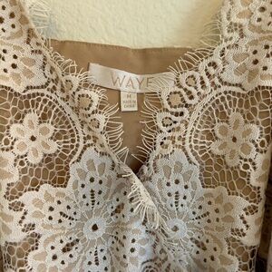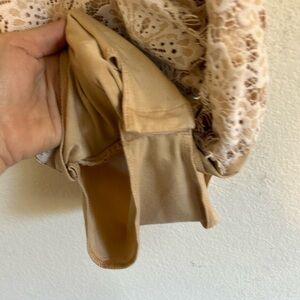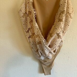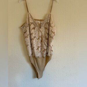 WAYF White Tan Lace V-Neck Adjustable Sleeveless Thong Bodysuit Medium
