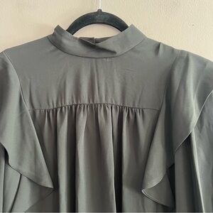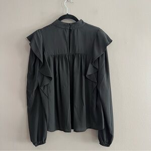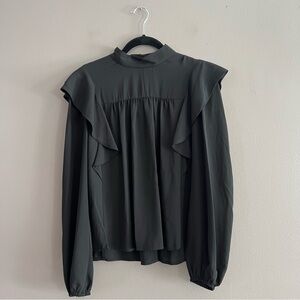 WAYF Women Ruffle Blouse Long Sleeve High Neck Office Business Black Size S
