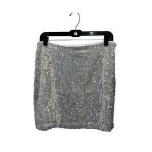 WAYF Women White Sequins Mini Skirt MEDIUM