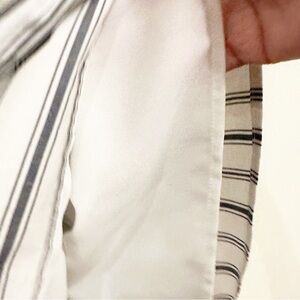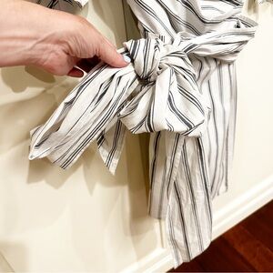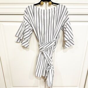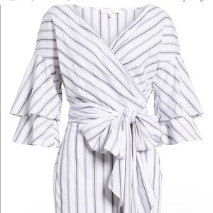 WAYF Women’s Beckett Blue Striped Ruffle Wrap Dress Large Bow Cotton Stretch S