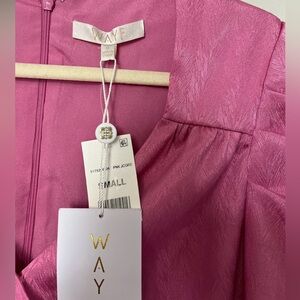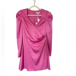 WAYF Womens Pink V-Neck Quinn Puff-Sleeve Faux-Wrap Short Mini Dress Size S NWT