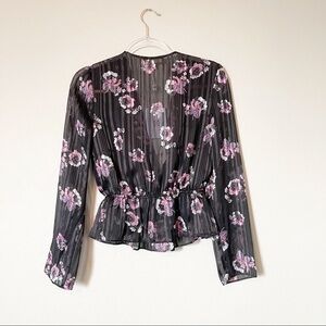 WAYF Women's Virginia Floral Peplum Blouse Sheer Metallic Black Pink XS NWT
