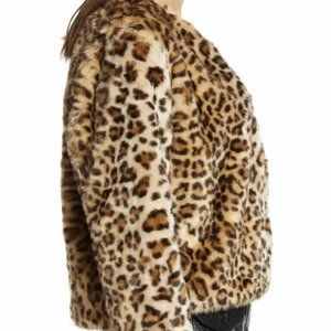 WAYF Women's X Influencers Brooklyn Faux Fur Chubby Jacket XL Leopard Brown NWT
