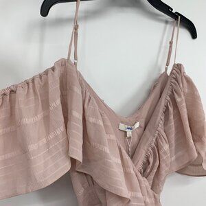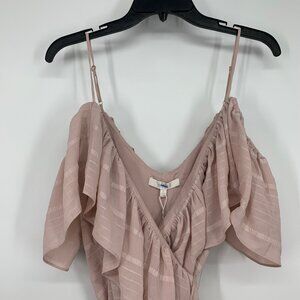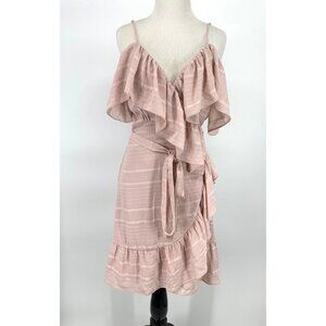 WAYF Wrap Dress Womens Size Small Elise Blush Pink Ruffled Cold Shoulder. New with tags. Inside lining. Adjustable straps. Romantic, feminine