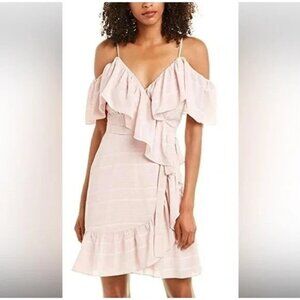 WAYF Wrap Dress Elise Blush Pink Ruffled Cold Shoulder NWT